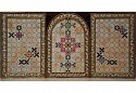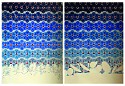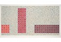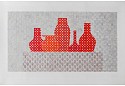 The piece is about the division in social class. Daniah used 2 typical views, one of rooftops and their haphazard TV dishes, the other is of a garden. Each View represents one social class. The more one is high on the social ladder, the better view one had. But humans have more things in common than not. We focus on eye level pleasures, but forget to look up and see we all share one sky, one heaven. The sky is represented symbolically by the 7 heavens, 7 devisions of different blues. The red triangles encourages the viewer to look up instead of downwards. Red being the colour of all humans, the colour of blood.