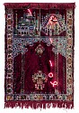The vintage prayer rugs, ubiquitous and utilitarian mass produced carpets sold at markets near Mecca, over time became collectible souvenirs attributed to the holiest city of Islam.