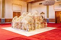 Single channel video and installation of tables, chairs, ceramic plates, silverware, glass cups, silver ewers and plates