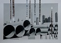 The earliest set of four swimming pools was made in 1999 and most recent set in 2010. As the longest ongoing series of works by Waheed, they elicit a lingering sense of anxiety through their obsessive repetition and a feeling of isolationism inherent to the uncanny fabrication of the suburban experience on the world’s largest and most valuable oil compound.